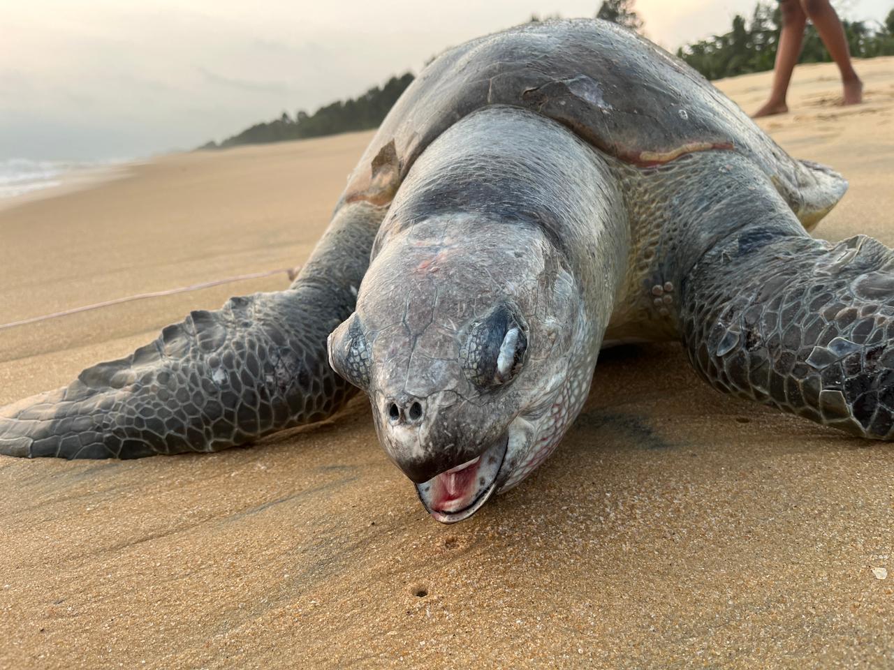 2 അടിയോളം വലിപ്പമുള്ള കടലാമയ്ക്ക് 40 കിലോയോളം ഭാരം ഉണ്ടാകുമെന്നാണ് നാട്ടുകാർ പറയുന്നത്. വംശനാശഭീഷണി നേരിടുന്ന ഹാക്സിബിൽ ഇനത്തിൽപ്പെട്ട അപൂർവ്വ ഇനം കടലാമയാണ് ചത്ത് കരയ്ക്കടിഞ്ഞത്.
