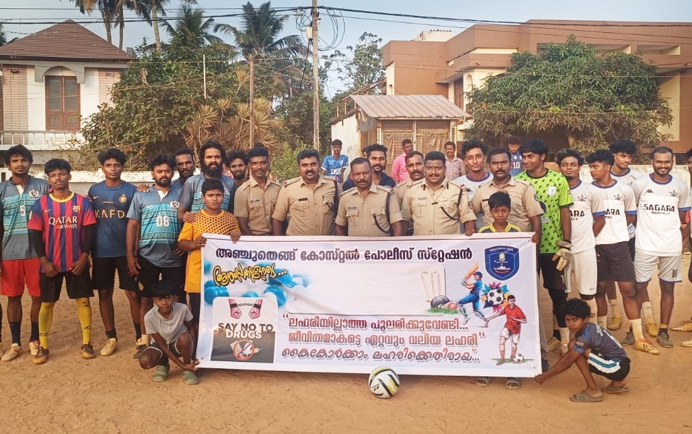 അഞ്ചുതെങ്ങ് കോസ്റ്റൽ പോലീസ് സ്റ്റേഷൻ്റെ നേതൃത്വത്തിൽ തിരദേശത്തേ യുവജന ക്ലബുകളുമായി ചേർന്നാണ് ലഹരി ഉപയോഗത്തിനെതിരായി ലഹരി വിമുക്തമായ യുവതലമുറയയെ സൃഷ്ടിക്കുന്നതിന്റെ ഭാഗമായി ഫുട്ബോൾ മൽസരം സംഘടിപ്പിച്ചത്.