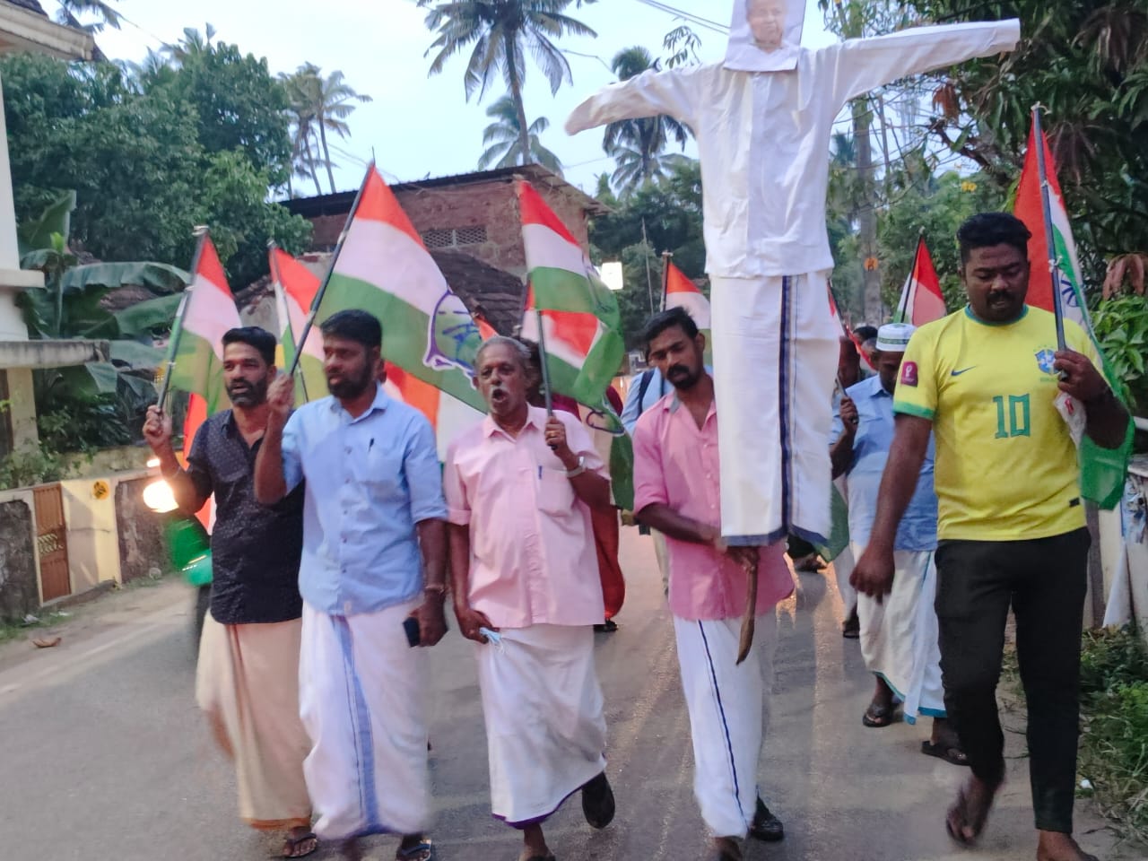 ഇന്ത്യൻ നാഷണൽ കോൺഗ്രസ് അഞ്ചുതെങ്ങ് മണ്ഡലം കമ്മിറ്റിയുടെ ആഭിമുഖ്യത്തിൽ യൂത്ത് കോൺഗ്രസ് സംസ്ഥാന പ്രസിഡണ്ട് രാഹുൽ മാങ്കൂട്ടത്തിലിനെ അറസ്റ്റ് ചെയ്തതിൽ പ്രതിഷേധിച്ച് മുഖ്യമന്ത്രിയുടെ കോലം കത്തിച്ചു. ജനാധിപത്യ പ്രതിഷേധങ്ങളെ അടിച്ചമർത്താനുള്ള പിണറായി വിജയൻറെ നേതൃത്വത്തിലുള്ള ഭരണകൂട ഭീകരത അവസാനിപ്പിക്കണമെന്നുംഎന്തു വില കൊടുത്തും ജനാധിപത്യത്തെ സംരക്ഷിക്കുമെന്നുംപ്രതിഷേധ പ്രകടനം ഉദ്ഘാടനം ചെയ്തുകൊണ്ട് മണ്ഡലം പ്രസിഡണ്ട് ജൂഡ് ജോർജ് പറഞ്ഞു.