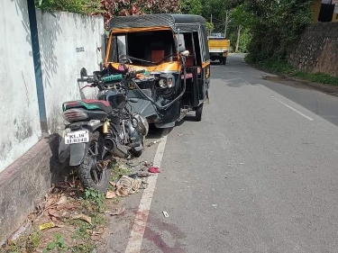 റോഡിലെ കുഴിയിൽ വീഴാതിരിയ്ക്കാൻ ഓട്ടോറിക്ഷ വെട്ടിത്തിരിച്ചതാണ് അപകടകാരണം. വെട്ടിത്തിരിച്ചതോടെ നിയന്ത്രണം വിട്ട KL16 L9098 എന്ന ആപ്പേ ഓട്ടോറിക്ഷ എതിർദിശയിൽ നിന്നും വന്ന ബൈക്ക് യാത്രികനെ ഇടിച്ചു തെറിപ്പിക്കുകയായിരുന്നു. KL16 H9343 എന്ന പൾസർ വാഹനമാണ് അപകടത്തിൽപ്പെട്ടത്.