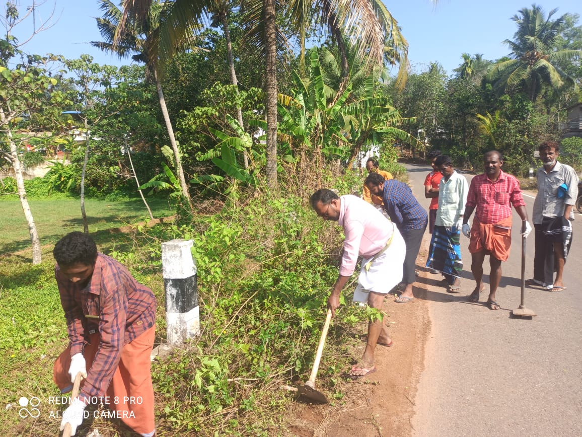 പാഴ്ചെടികൾ നിറഞ്ഞ നാവായിക്കുളം മുമ്മൂലി തോടും പരിസരവും ബിജെപി പ്രവർത്തകർ വൃത്തിയാക്കി.