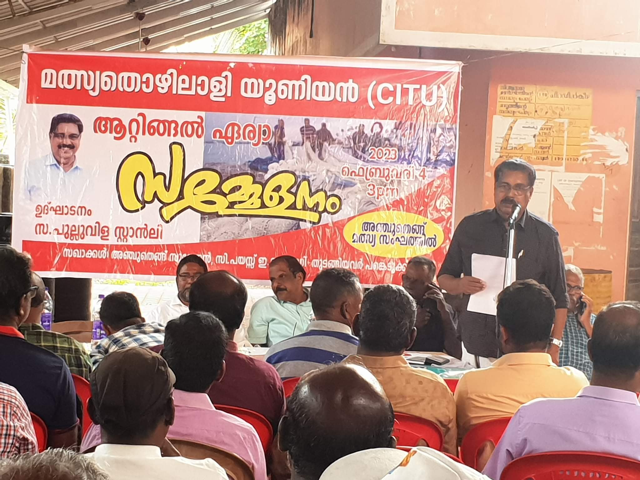 സിഐടിയു മത്സ്യത്തൊഴിലാളി യൂണിയൻ ആറ്റിങ്ങൽ ഏരിയ സമ്മേളനം അഞ്ചുതെങ്ങിൽ സംഘടിപ്പിച്ചു. സമ്മേളനം ആൾ ഇന്ത്യ ഫിഷർസ് ആൻഡ് ഫിഷറീസ് വർക്കേഴ്സ് യൂണിയൻ അഖിലെന്ത്യ പ്രസിഡന്റ് പുല്ലുവിള സ്റ്റാൻലി ഉദ്ഘാടനം ചെയ്തു.
