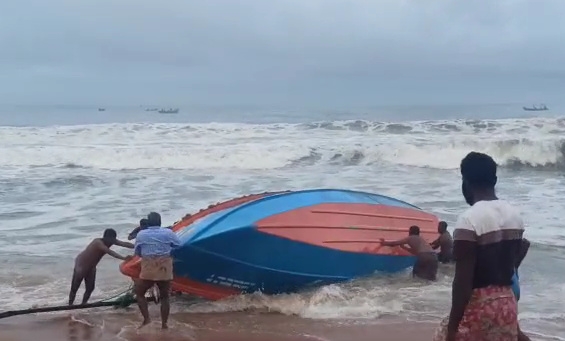 കഠിനംകുളം മര്യനാട് ശക്തമായ തിരയിൽപ്പെട്ട് മത്സ്യബന്ധന വള്ളം മറിഞ്ഞു : മൂന്ന്പേർക്ക് പരുക്ക്.