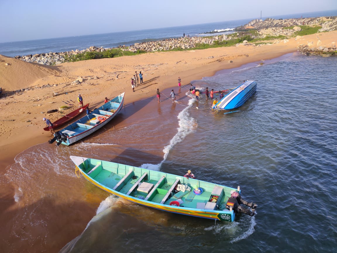 രാവിലെ 7:20 ഓടെയാണ് അപകടം. കോസ്റ്റൽ പോലീസും, മറൈൻ എൻഫോഴ്സ്മെൻ്റ് മത്സ്യതൊഴിലാളികളും രക്ഷാപ്രവർത്തനത്തിന് നേതൃത്വം നൽകി.