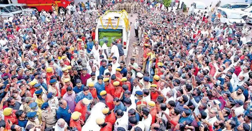 മുഖ്യമന്ത്രി പിണറായി വിജയനും സിപിഐഎം ജനറല് സെക്രട്ടറി സീതാറാം യെച്ചൂരിയുമാണ് കോടിയേരിയുടെ മൃതദേഹവും വഹിച്ച് കൊണ്ട് ഇരുവശങ്ങളിലുമുണ്ടായിരുന്നത്.