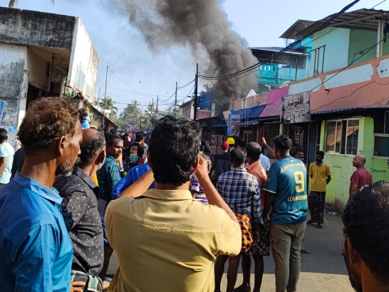 ഇവിടെ പ്രവർത്തിച്ചുവന്ന മണ്ണെണ്ണക്കടയ്ക്കാണ് തീപ്പിടിച്ചതെന്നാണ് സൂചന. ഇവിടെ സൂക്ഷിച്ചിരുന്ന ഗ്യാസ് സിലിണ്ടറുകളടക്കം തീപിടുത്തത്തിൽ ഉഗ്ര സ്ഫോടനത്തോടെ പൊട്ടിതെറിച്ചതായി ദൃസാക്ഷികൾ പറയുന്നു.