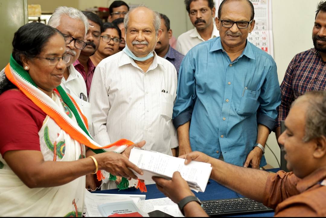 നിലയ്ക്കാമുക്ക് ഉപതിരഞ്ഞെടുപ്പ് : യു.ഡി.എഫ്സാനാർത്ഥി സുനിത പത്രിക സമർപ്പിച്ചു.