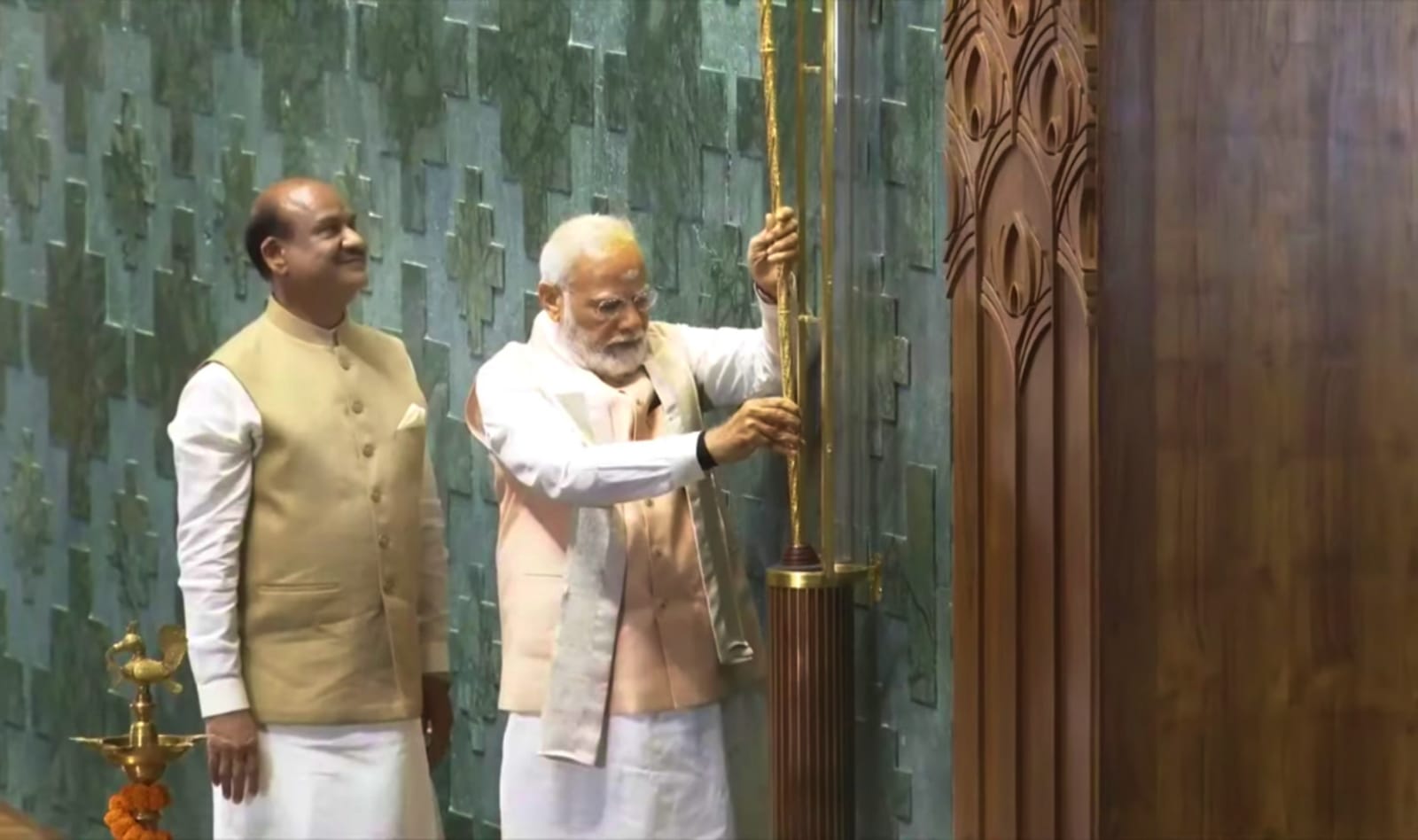 പ്രധാനമന്ത്രി നരേന്ദ്രമോദി പുതിയ പാര്‍ലമെന്റ് മന്ദിരത്തില്‍ ചെങ്കോല്‍ സ്ഥാപിച്ചു.