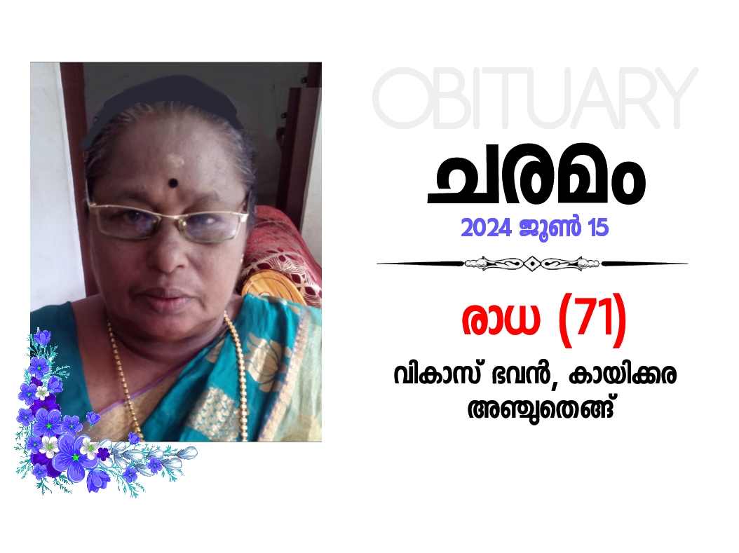 അഞ്ചുതെങ്ങ് കായിക്കര വികാസ് ഭവനിൽ രാധ (71) നിര്യാതയായി.