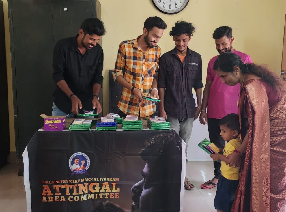 ദളപതി വിജയുടെ ജന്മദിനത്തോടനുബന്ധിച്ച് പഠനസാമഗ്രികൾ വിതരണം ചെയ്തു.