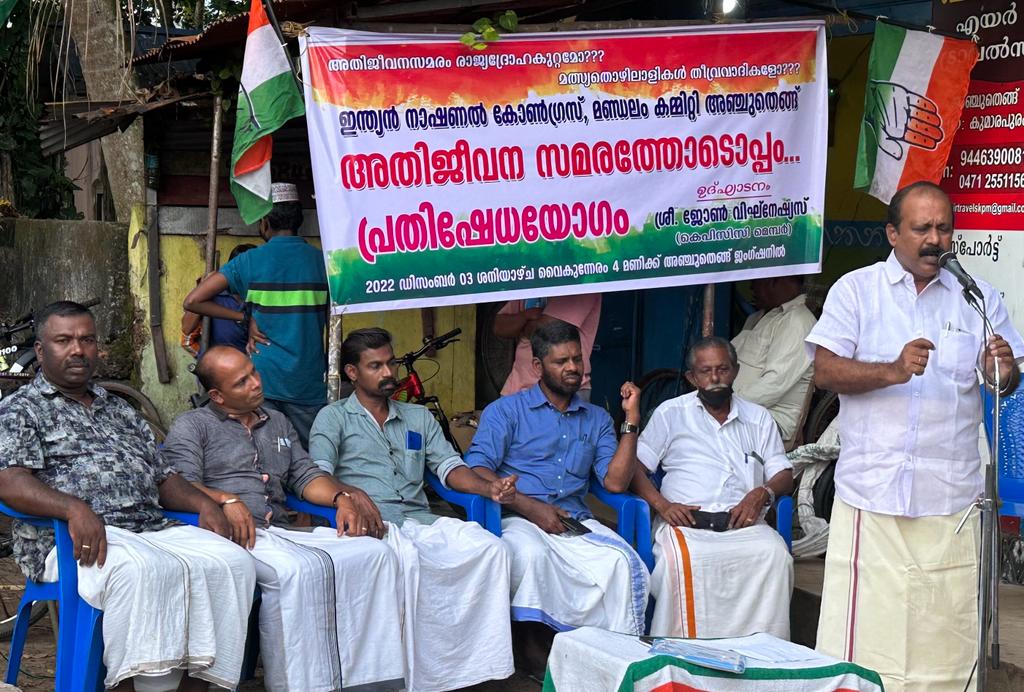 വിഴിഞ്ഞം സമരത്തിന് ഐക്യദാർഢ്യം പ്രഖ്യാപിച്ചുകൊണ്ട് കോൺഗ്രസ് അഞ്ചുതെങ്ങ് മണ്ഡലം കമ്മിറ്റി പ്രതിഷേധ യോഗം സംഘടിപ്പിച്ചു. മണ്ഡലം പ്രസിഡണ്ട് ജൂഡ് ജോർജ്ജ് അധ്യക്ഷതവഹിച്ച പരിപാടി, കെപിസിസി അംഗം ജോൺ വിഘ്നേഷ്യസ് ഉദ്ഘാടനം ചെയ്തു. നെൽസൺ ഐസക്, യേശുദാസൻ സ്റ്റീഫൻ, ഷെറിൻ ജോൺ, സേവ്യർ, ഔസേപ്പ് ആന്റണി, അൻവർഷാ, നൗഷാദ്, ഷാജി, ചന്ദ്രൻ,തമ്പി, ദിവ്യാ ഗണേഷ്,ഷീമാ ലെനിൻ,രാജമണി എന്നിവർ സംസാരിച്ചു
